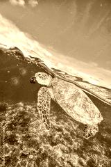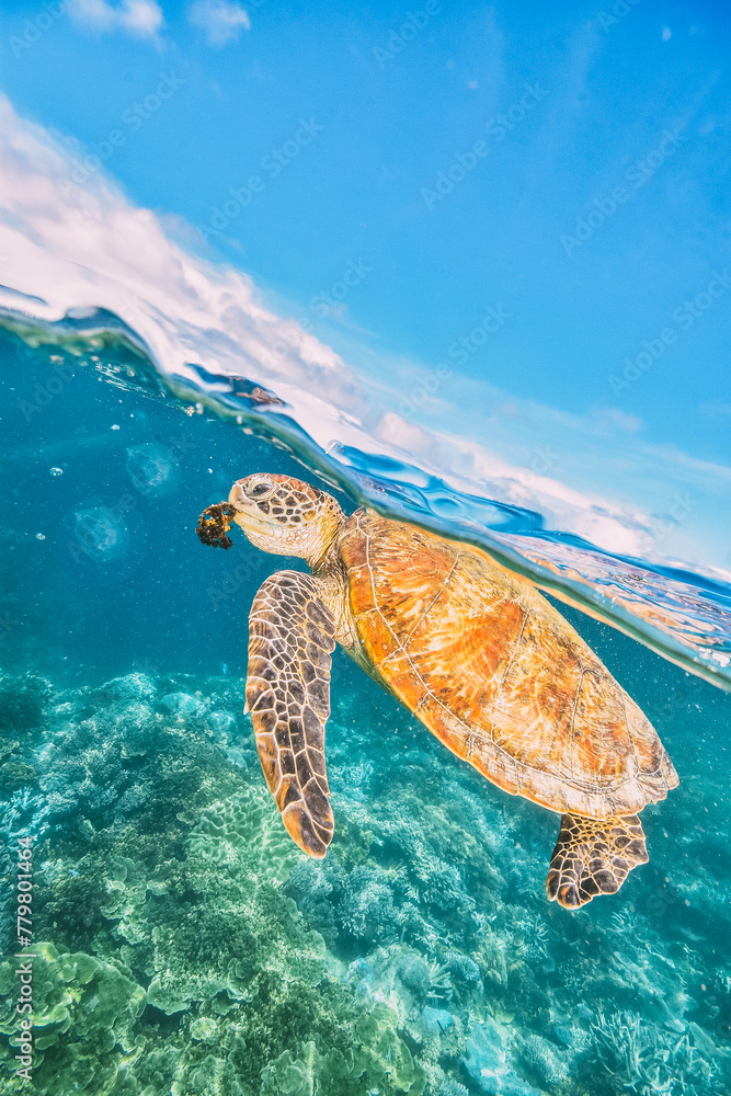 green sea turtle eating algae