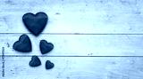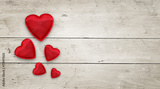 Red hearts on wood banner, Valentines Day background