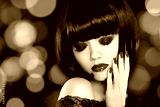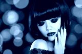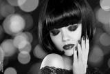 Makeup. Manicured nails. Beauty girl portrait. Back short bob ha