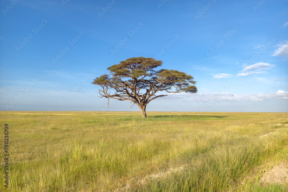 Masai Mara, Kenya. landscape view for lonely acacia tree at the vast plains southern Kenya.