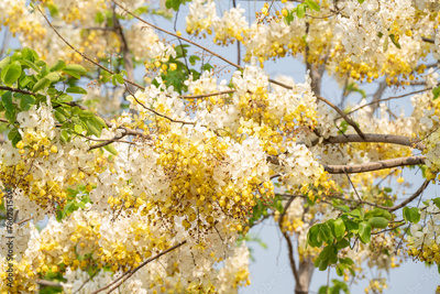 White Golden shower flower or Indian Laburnu, Cassia fistula on Golden shower tree.