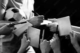 Autographs by football star on black and lights background