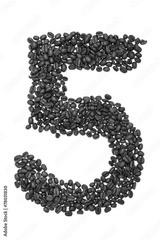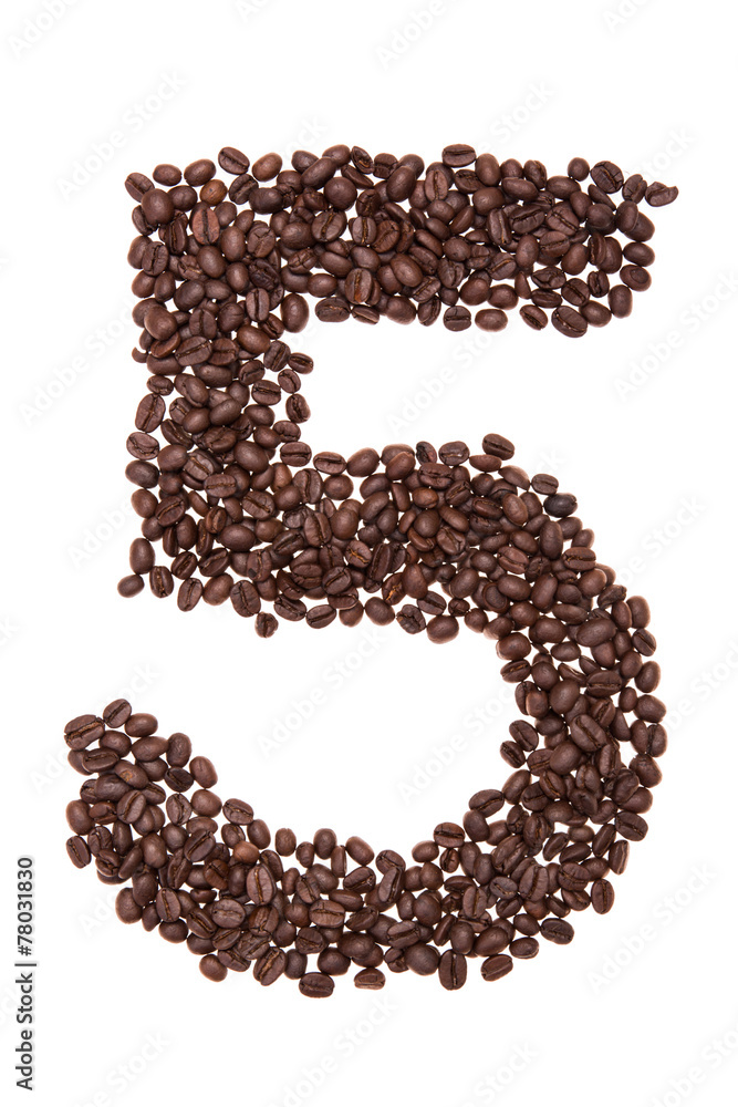Roasted coffee beans placed in the shape of number five