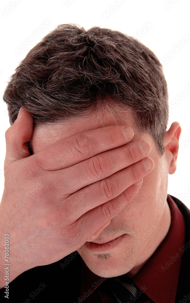 Man cover his face.