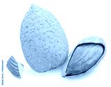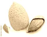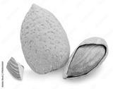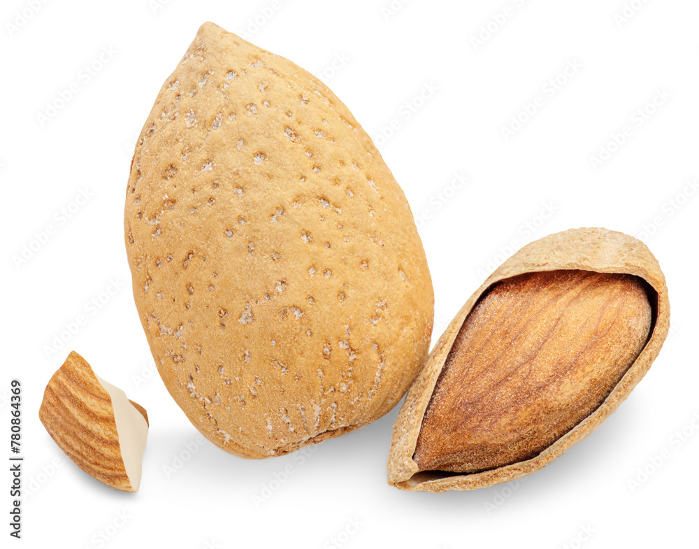 Almonds nut with shell and cracked almonds shell isolated on white background. Almond package design element. .
