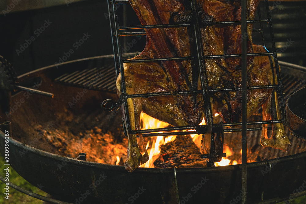 meat is grilled over an open fire