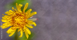 Kwiat mniszka lekarskiego o wyglądzie złotej gwiazdy. Wiosną na chodniku miejskim zakwitł kwiat mniszka lekarskiego. Wiosenna przyroda w środku miasta.
