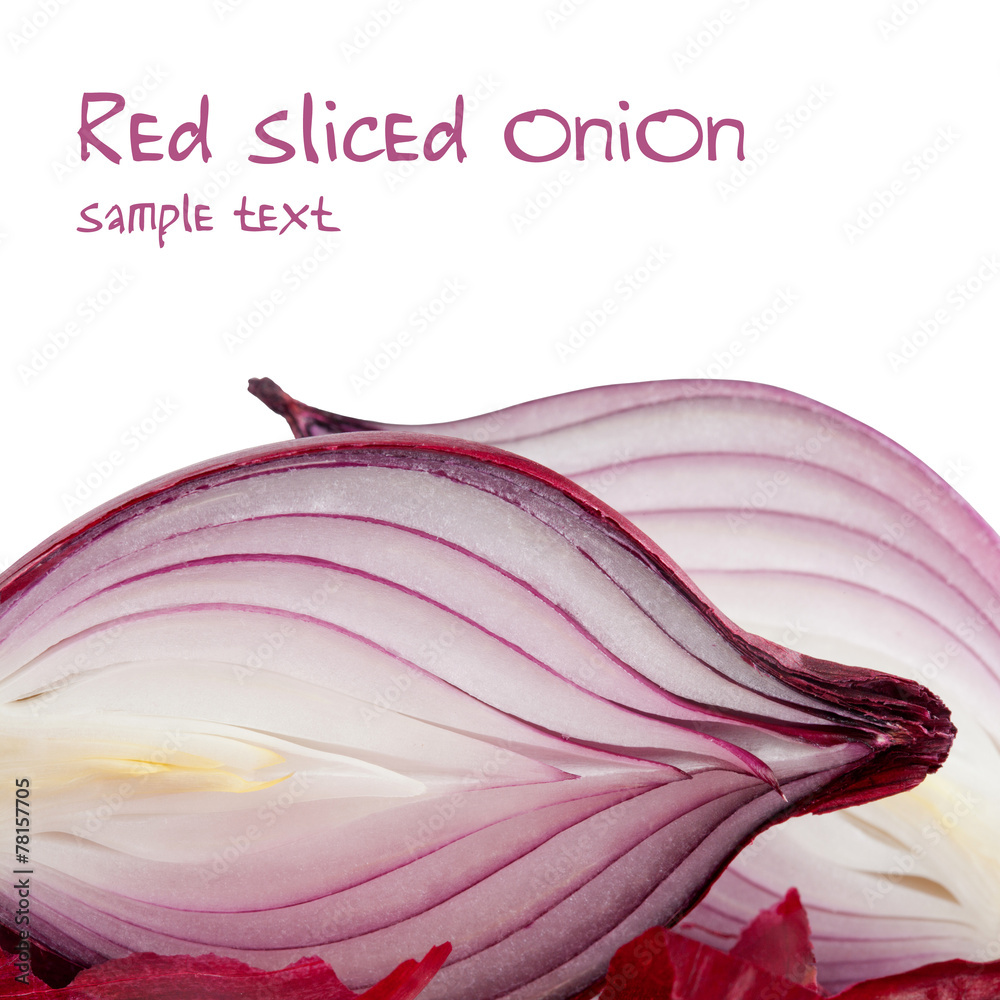 Red onion. closeup. Macro view. with sample text