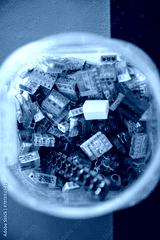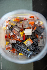 Plan rapproché d'une petite boite contenant un ensemble de borne de raccordement électrique