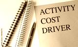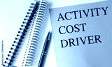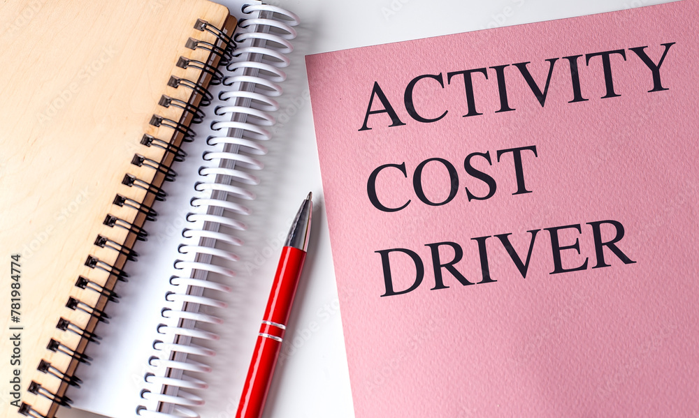 ACTIVITY COST DRIVER text on pink paper with notebooks