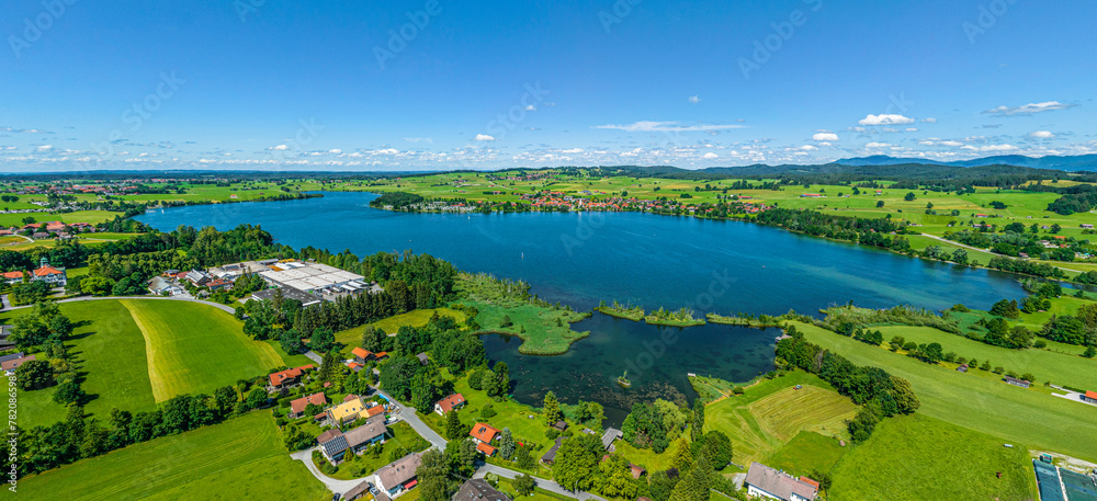 Idyllische Landschaft am Riegsee nahe Murnau in Oberbayern im Sommer