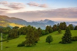 Green field and view of Trzy Korony, Pieniny Mountains Peak in Poland at Spring. Fresh green spring landscape, beautiful Poland