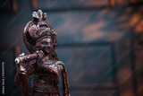 Lord Krishna sculpture with copy space for greeting text, Janmashtami and Happy Vishu background