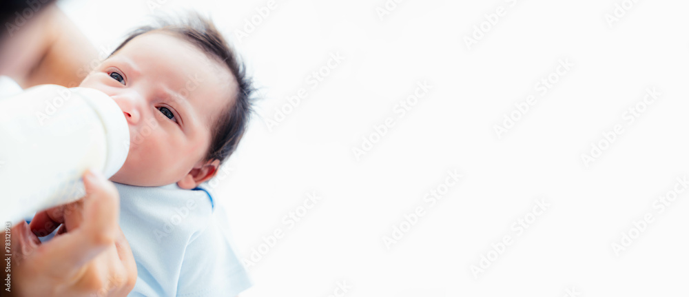 A close-up shot of a baby feeding from a milk bottle held by a parent's loving hands.
