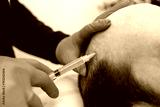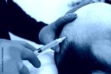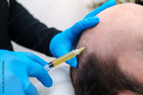 Close-up of a PRP injection into the scalp to treat hair loss.
