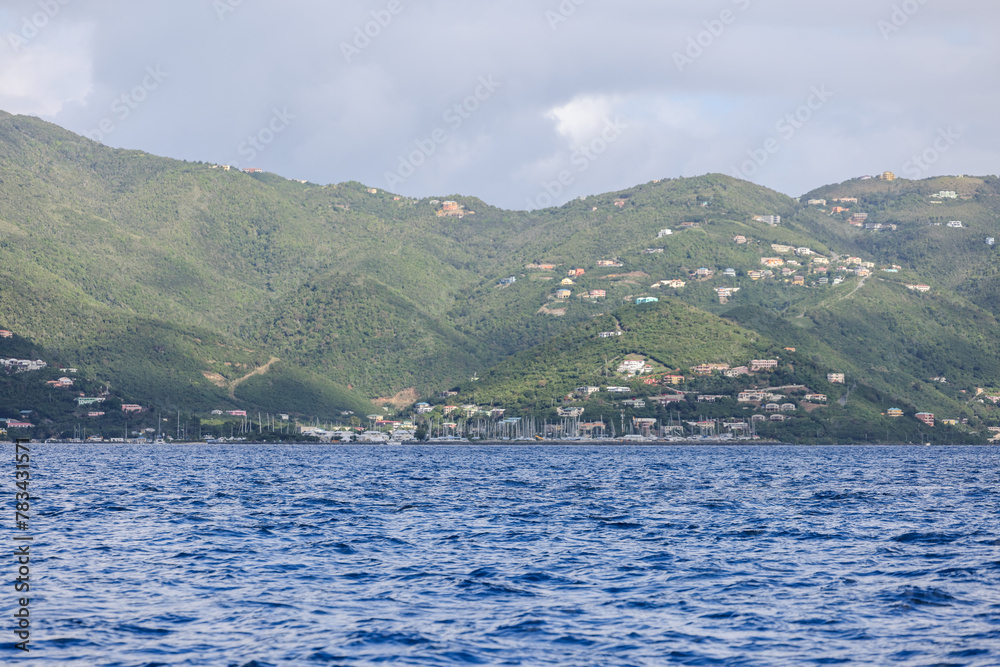 Tortola, British Virgin Islands - March 27, 2024: The shoreline of Tortola in the British Virgin Islands