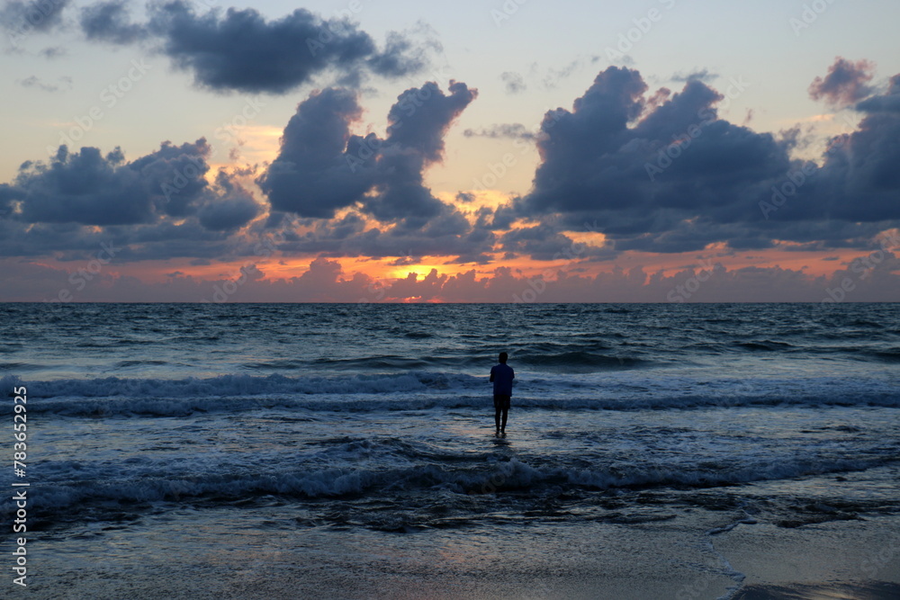 Lighting and color of the sky above the horizon at sunset.