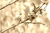 beautiful soft Pink plum flower bloomimg on the tree branch. Small fresh buds and many petals layer romantic flora in botany natural garden blue sky background.