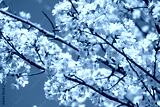 beautiful pink Japanese cherry blossoms flower or sakura bloomimg on the tree branch. Small fresh buds and many petals layer romantic flora in botany garden. isolated on blue sky.