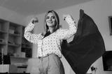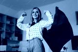 Strong Superhero Manager Feeling Powerful and Invincible. Super heroine businesswoman showing strength and confidence