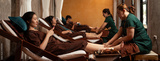 Professional Masseuse mature asian woman working service foot massage to customer in spa salon, Massage customer chatting with smartphone, Relaxing massage in cosmetology spa centre.