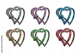 Brooch in the form of a double heart on a white background.Hearts of jewelry.A heart with diamonds.