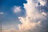 Cumulus clouds of an impressive shape in the blue sky in sunny weather.