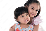 Portrait of Asian little girl on white background