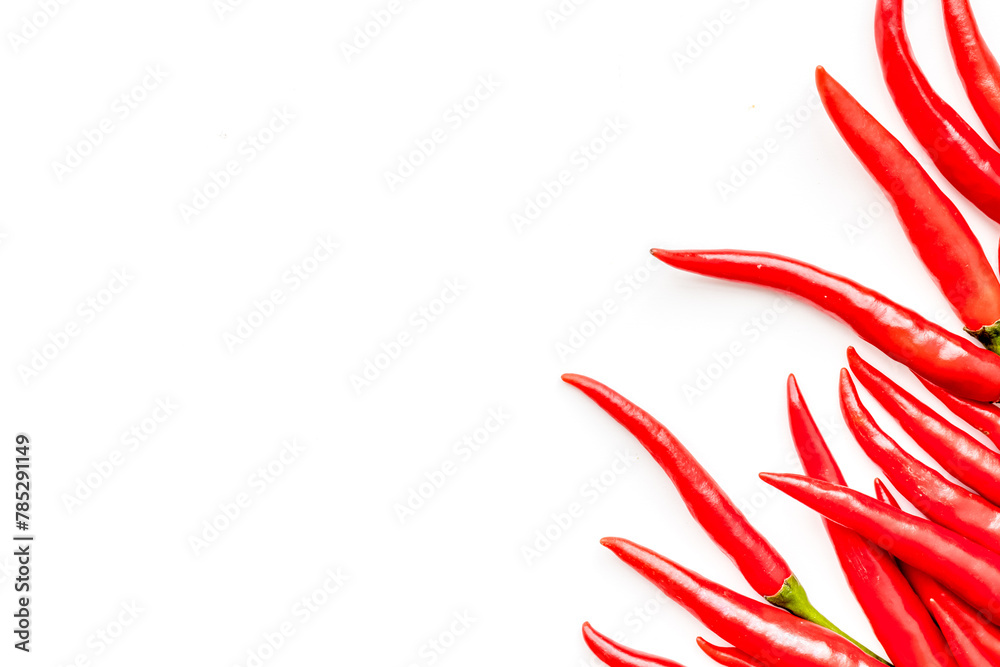 Fresh red chilli pepper as food ingredient on white table background top view mockup