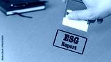 ESG report, Environmental social governance, President putting a stamp authorizing the company's ESG report, Green background copy space