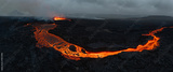 Beautiful aerial panoramatic view of active volcano, Litli - Hrutur, Iceland 2023