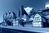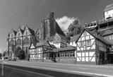 Medieval street with traditional half-timbered houses and University Church, Marburg an der Lahn, Germany
