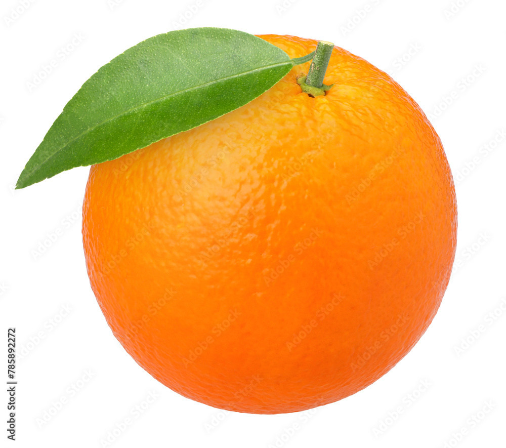 Orange fruit with leaves isolated, transparent PNG, PNG format, full depth of field, cut out, single
