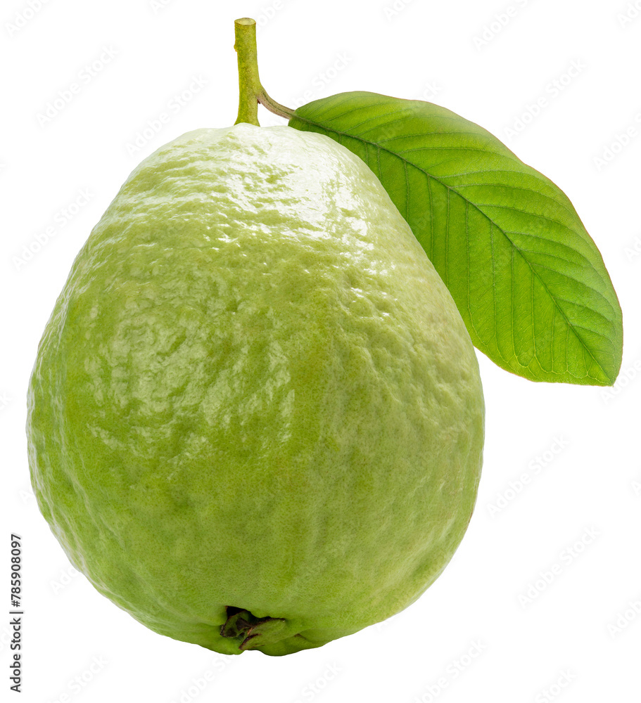 Pink guava fruit with leaf isolated on white background, Fresh Pink guava on White PNG file.