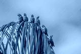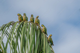 Red-bellied Macaw, Orthopsittaca Manilata, green colored parrot bird with yellow head and red belly, palm lagoon Lagoa Das Araras, Bom Jardim, Nobres, Mato Grosso, Brazil, South America