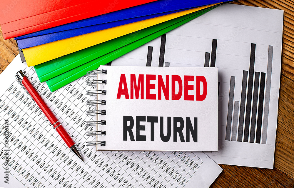 AMENDED RETURN text on notebook with folder on chart