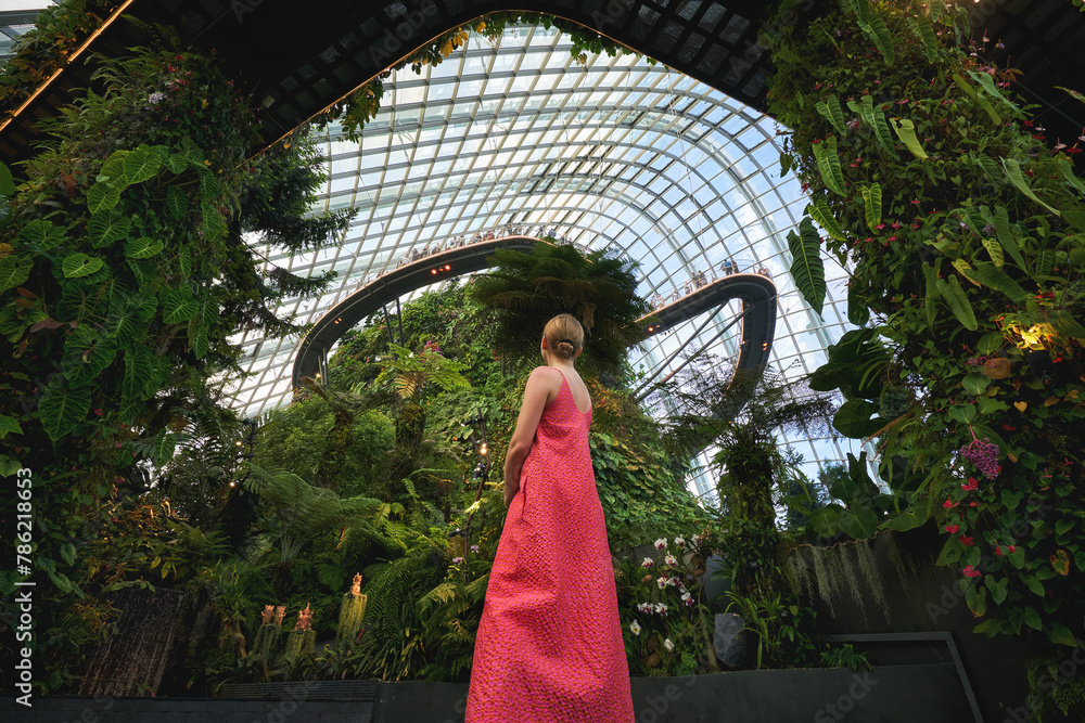 Young woman looking at the cloud forest in Singapore