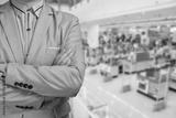 Business Man stand in Hypermarket or Supermarket store present r