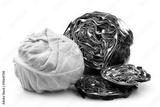 Freshly cut red and white cabbage on a white background