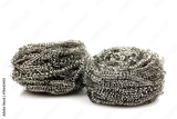 two steel wire scrubs on a white background