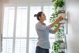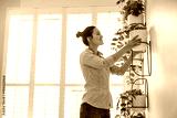 Woman taking care of the plants at her apartment