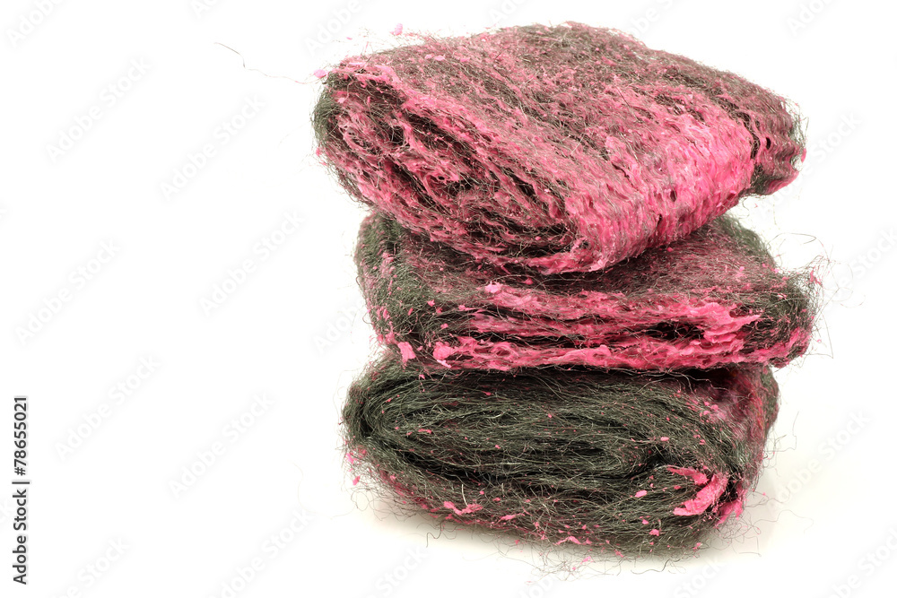steel wool abrasive soap pads on a white background