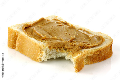 sliced white bread with peanut butter on a white background