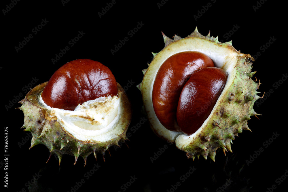 freshly fallen chestnuts(Aesculus hippocastanum)