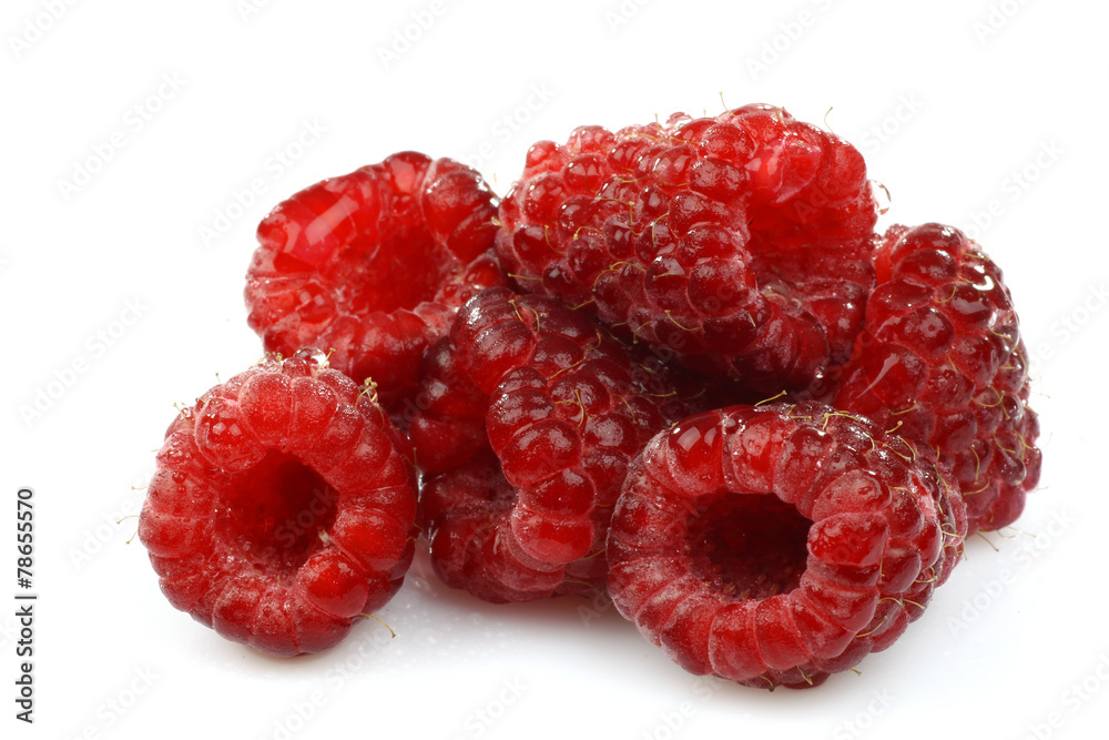 bunch of raspberries on a white background