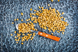 Green coffee beans on black table