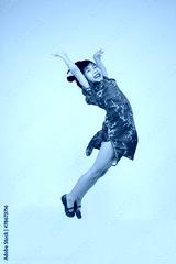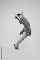 Portrait of happy little Asian child jumping to the air