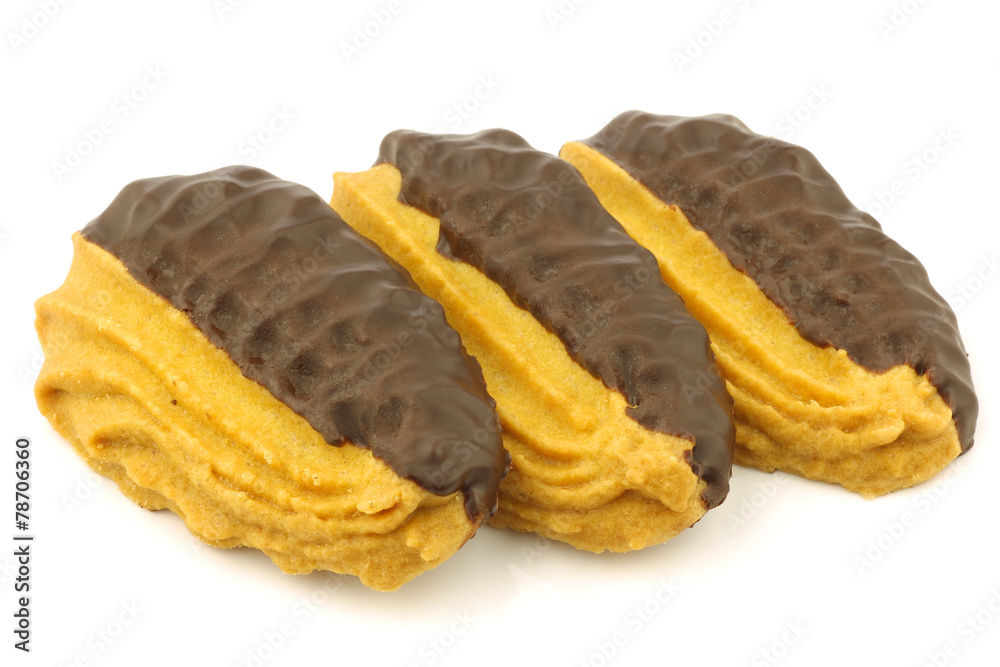 traditional dutch cookies called "sprits" with a chocolate cover