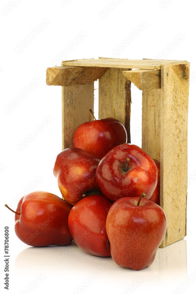 Fresh and delicious red Ambrosia apples in a wooden crate