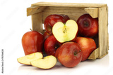 Fresh and delicious red Ambrosia apples in a wooden crate